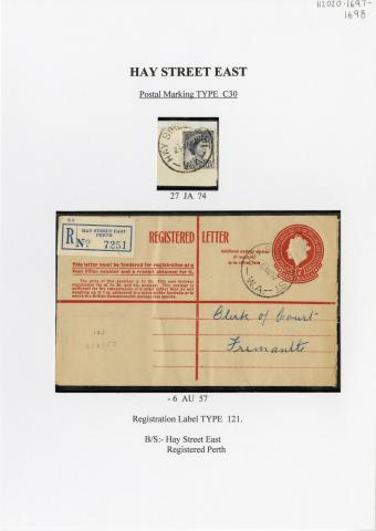 Postmark from Hay Street East, black ink, circular, (C30 type), dated 27/1/19?4.