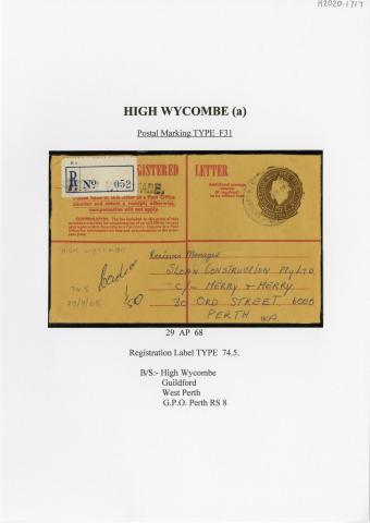 Registration Label, High Wycombe (with F31 type postmark), 1968