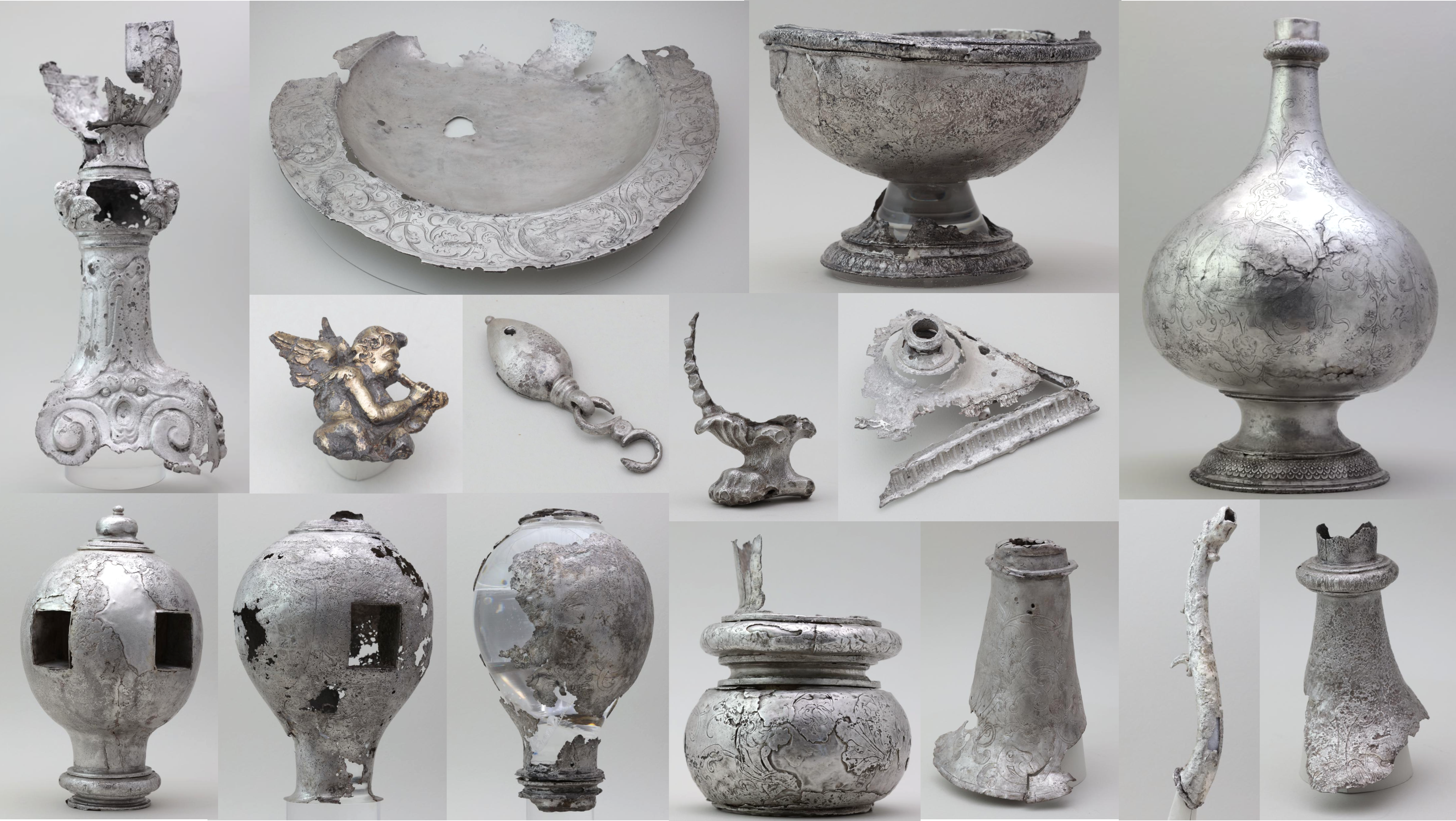 In the 1970s, the objects were heavily reconstructed using silversmithing techniques such as etching, brazing, annealing, and raising. While these interventions were intended to help preserve and exhibit the objects, they also introduced new materials and permanently altered their original physical and chemical properties. In some cases, fragments also became disassociated from one another, further complicating their interpretation and the ability to distinguish what is authentic from later repairs. This, in turn, led to misinterpretations of their original form and function.