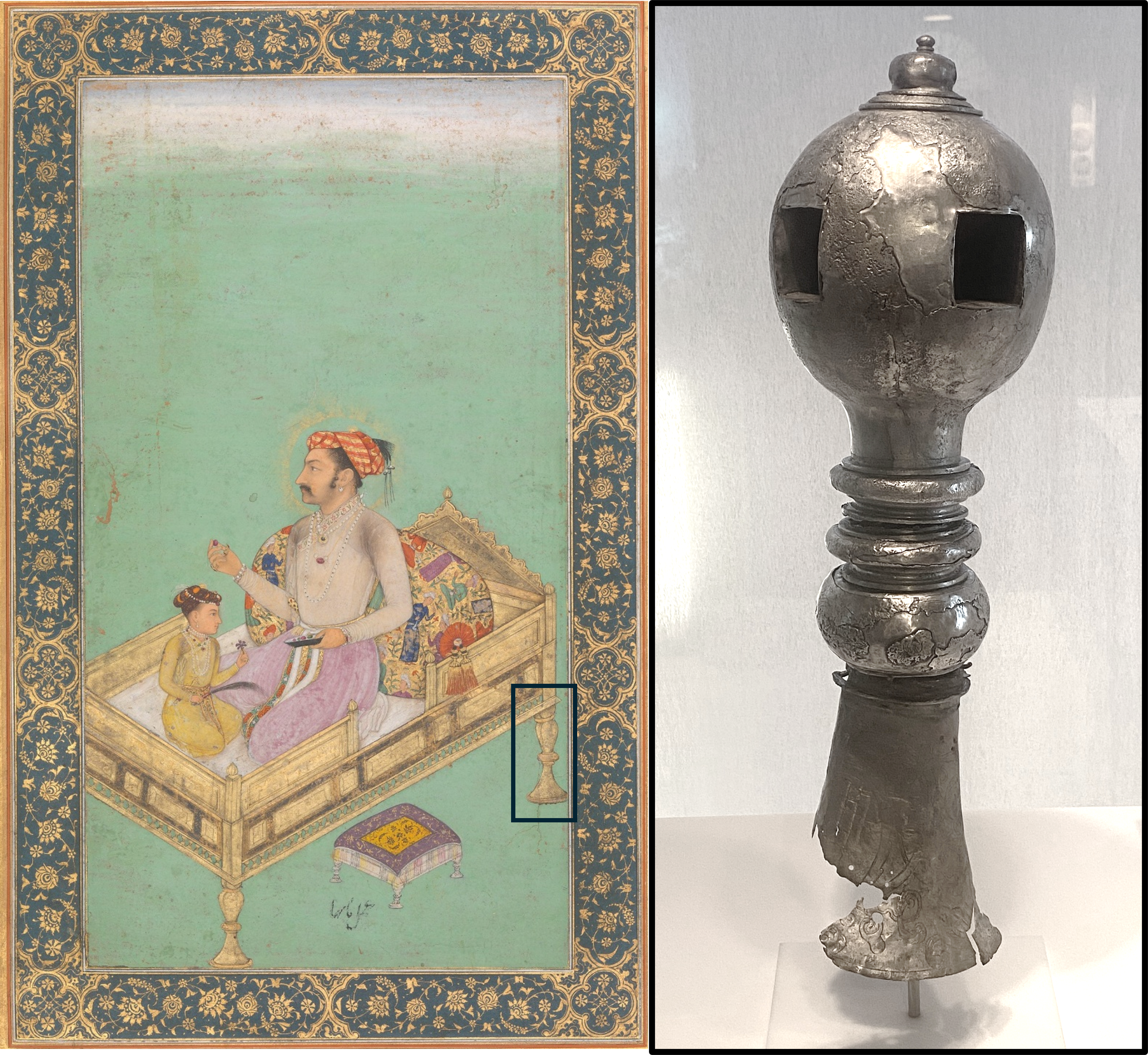 Left: 'The Emperor Shah Jahan with his Son Dara Shikoh, Nanha (detail)', Shah Jahan Album, c. 1620, Metropolitan Museum of Art, inv. 55.121.10.36