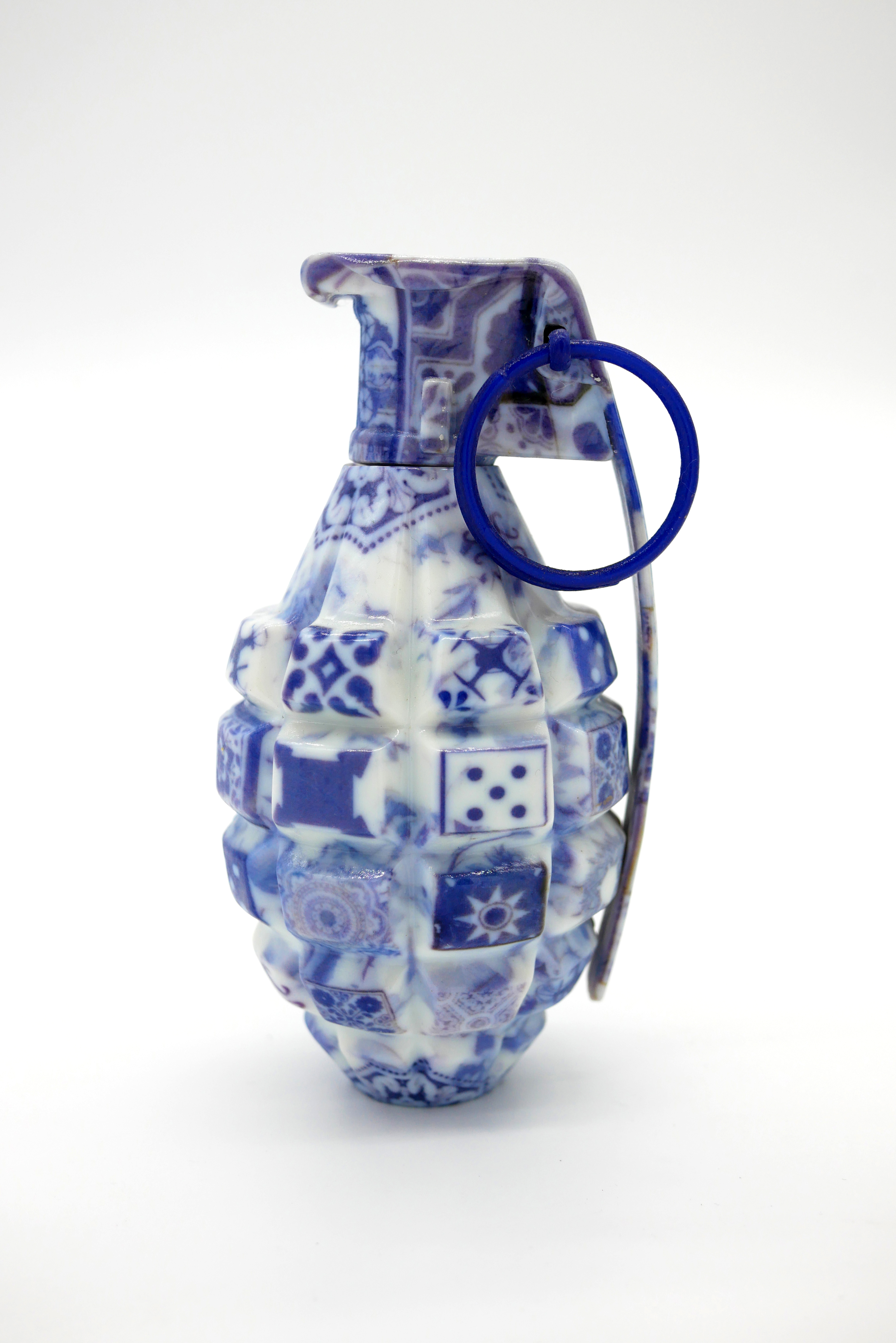 Glow’s work offers a nuanced reflection on the patterns of violence that were so often entangled with the production of luxury and wealth in the early modern world. Her piece Explo'deur (2021) renders a Second World War-era ‘pineapple’ hand grenade in recognizably Delftware-style—the viral Dutch-made blue and white ceramics inspired by the Ming Chinese porcelains that the VOC imported into Europe. Contemporary cultural practitioners and the broader museum field continues to find resonance in how cultural production and trade goods that historically circulated intercontinentally between Asia, Europe, and the Americas continue to influence contemporary material and visual culture. Countering ‘historical amnesia,’ Explo'deur disrupts romanticised memories of the Dutch Golden Age, and prompts a confrontation with the mass death and dispossession that facilitated the global trade in opulent commodities across the world’s oceans—the paradox of luxury (Glow and Evangelista 2024).
